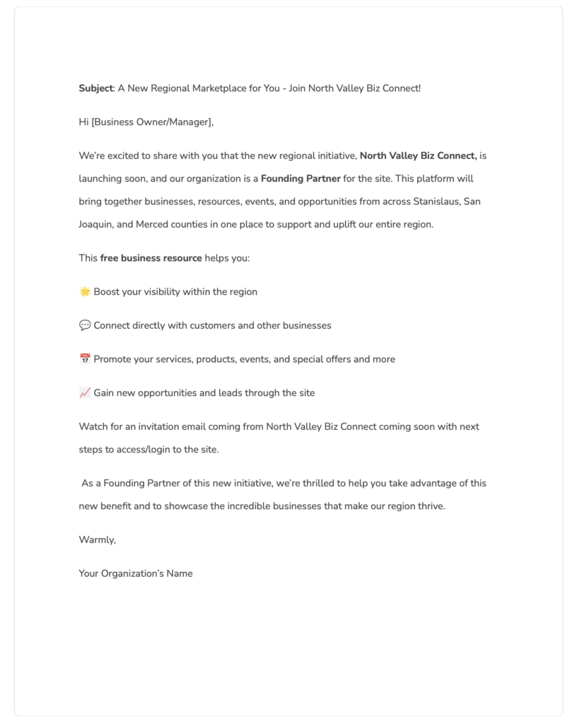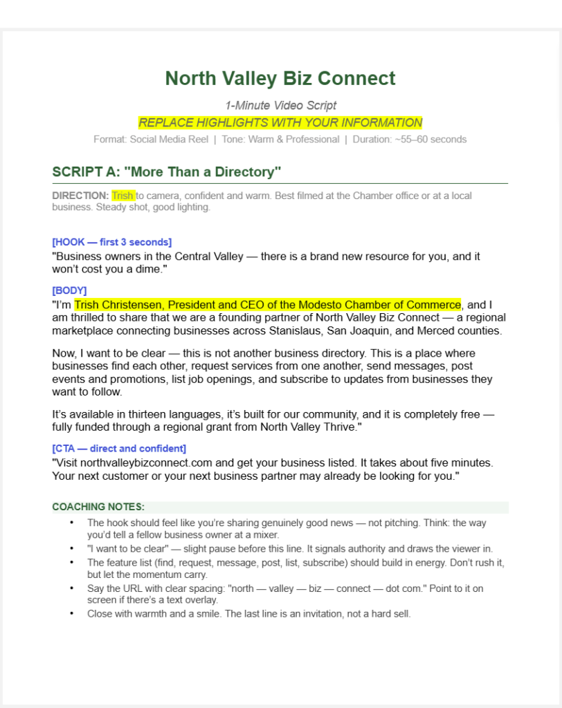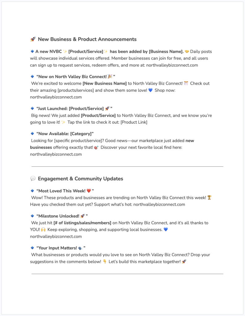 Resources, templates, and content to help you market the North Valley Biz Connect Marketplace